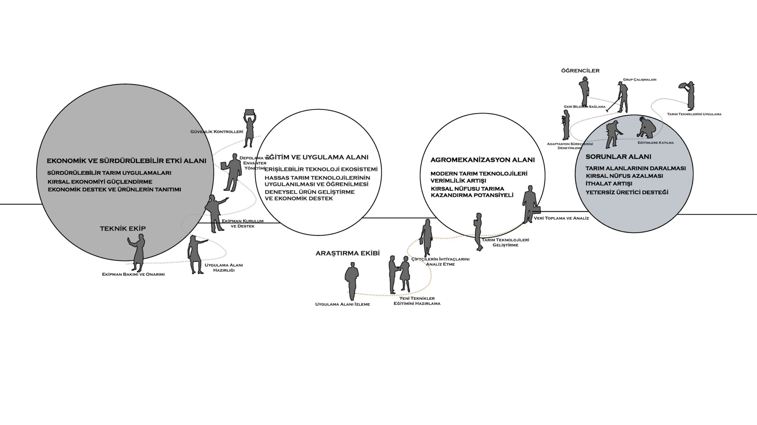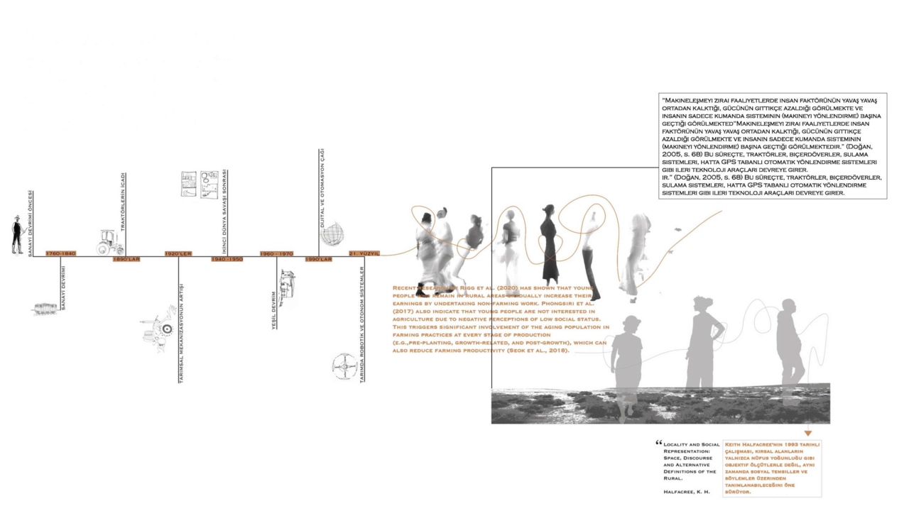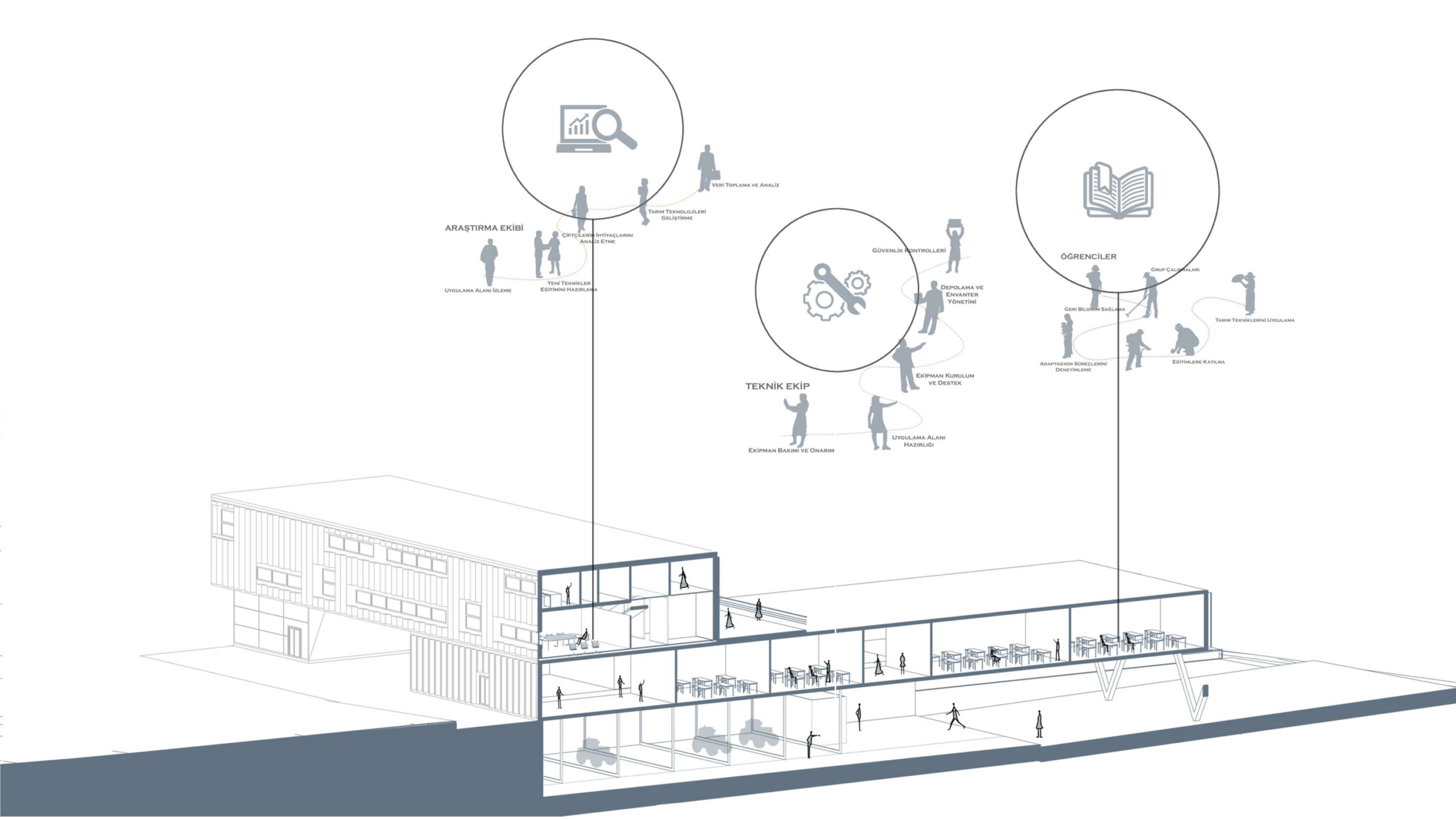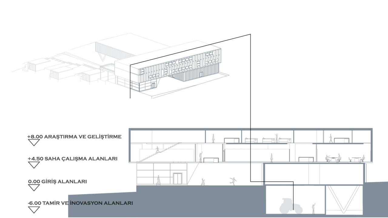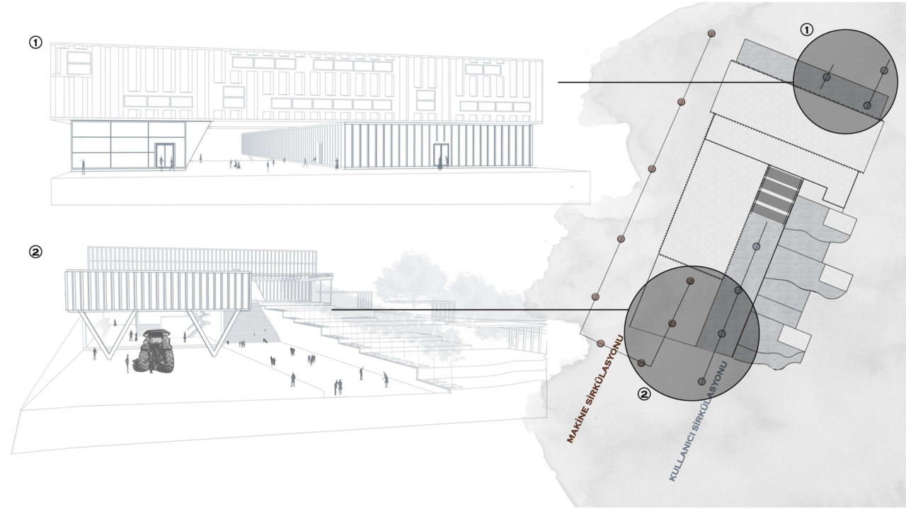 This project explores the spatial dimensions of agricultural mechanization through a contemporary design approach, proposing an innovative agricultural center that balances functionality, sustainability, and aesthetic value. The design is structured around three main axes—research and development, education, and mechanization—forming the core framework of the project.