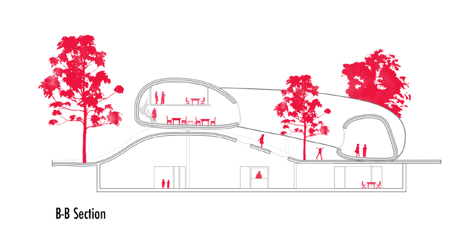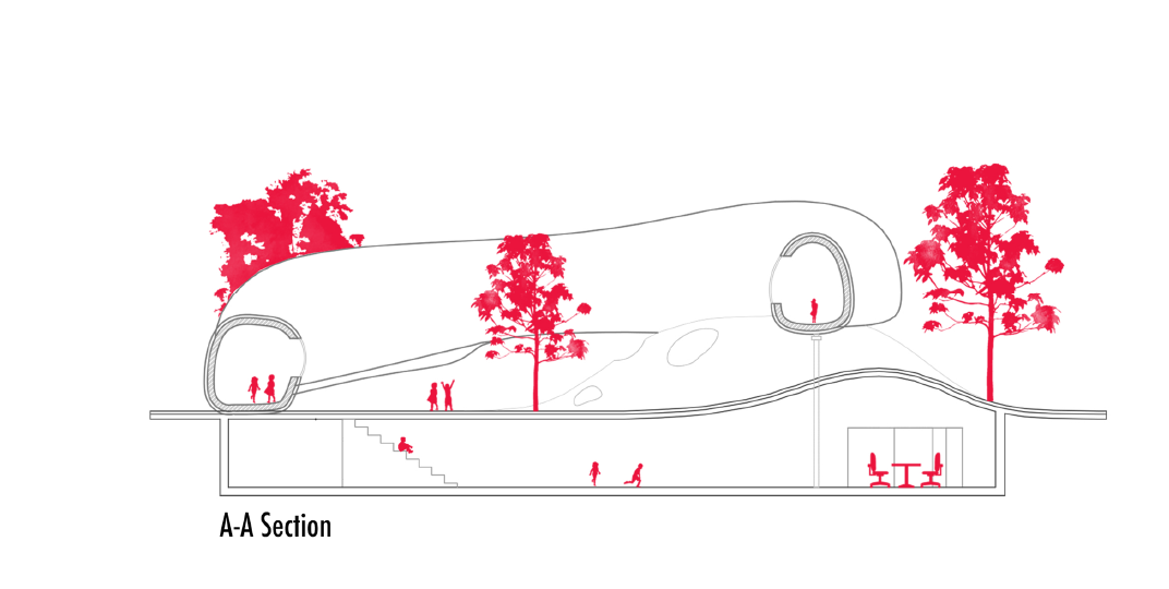 Classrooms, the cafeteria, and shared spaces enhance social interaction and provide productive areas for teachers. The basement accommodates computer labs, counseling services, and a library, providing easy access to educational resources. Ground-floor play areas foster imagination and physical activity, while generous natural daylight strengthens the connection between interior spaces and the outdoors.